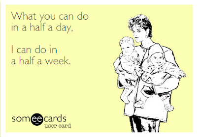 I saw her a lot during the year I had a big baby and a newborn baby. She was the big baby's (my one year old's) primary physician, but not the newborn. I don't even know why, I don't even know if I made these decisions or the office did or if no one did and it just happened. Anyway when I had a one year old and a newborn, my one year old was sick A LOT. Her children were now teenagers or older, and her family spacing looked eerily like mine. She often reminded me what she would say when she had two small children, "what you can do in a half a day I can do in a half a week".